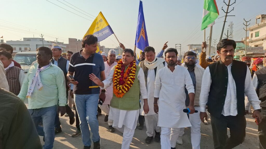 चंदौली- पंडित दीनदयाल उपाध्याय नगर में आम आदमी पार्टी की पदयात्रा निकाली गई। यात्रा का नेतृत्व सांसद संजय सिंह ने किया। पदयात्रा बहादुरपुर पुलाव शरीफ से शुरू होकर अलीनगर बाजार तक जाएगी। पदयात्रा के दौरान पार्टी कार्यकर्ताओं ने रोजगार दो, सामाजिक न्याय दो के नारे लगाए। पार्टी ने पड़ाव पर हॉस्पिटल और महिला डिग्री कॉलेज की व्यवस्था करने, सरकारी कर्मचारियों की पुरानी पेंशन बहाल करने, कोयला मण्डी को प्रदुषण मुक्त करने, ऑक्सीजन फैक्ट्री से उत्सर्जित कार्बाइड हानिकारक पदार्थों से निजात दिलाने और मुगलसराय में जाम से निजात दिलाने की मांग की।