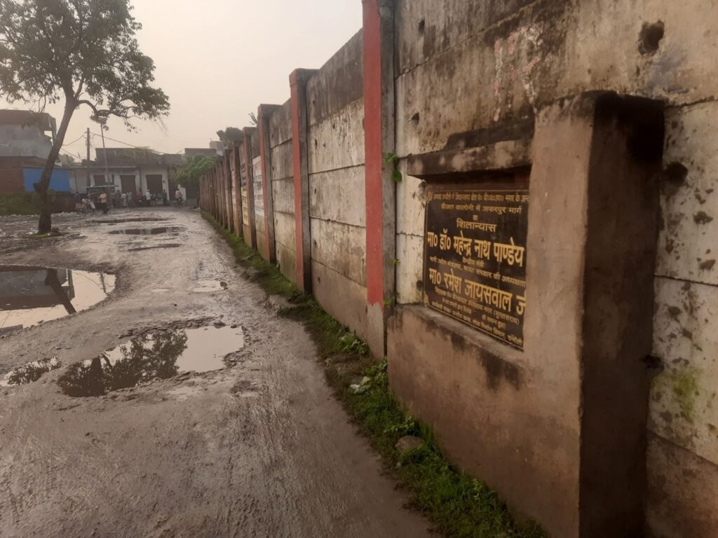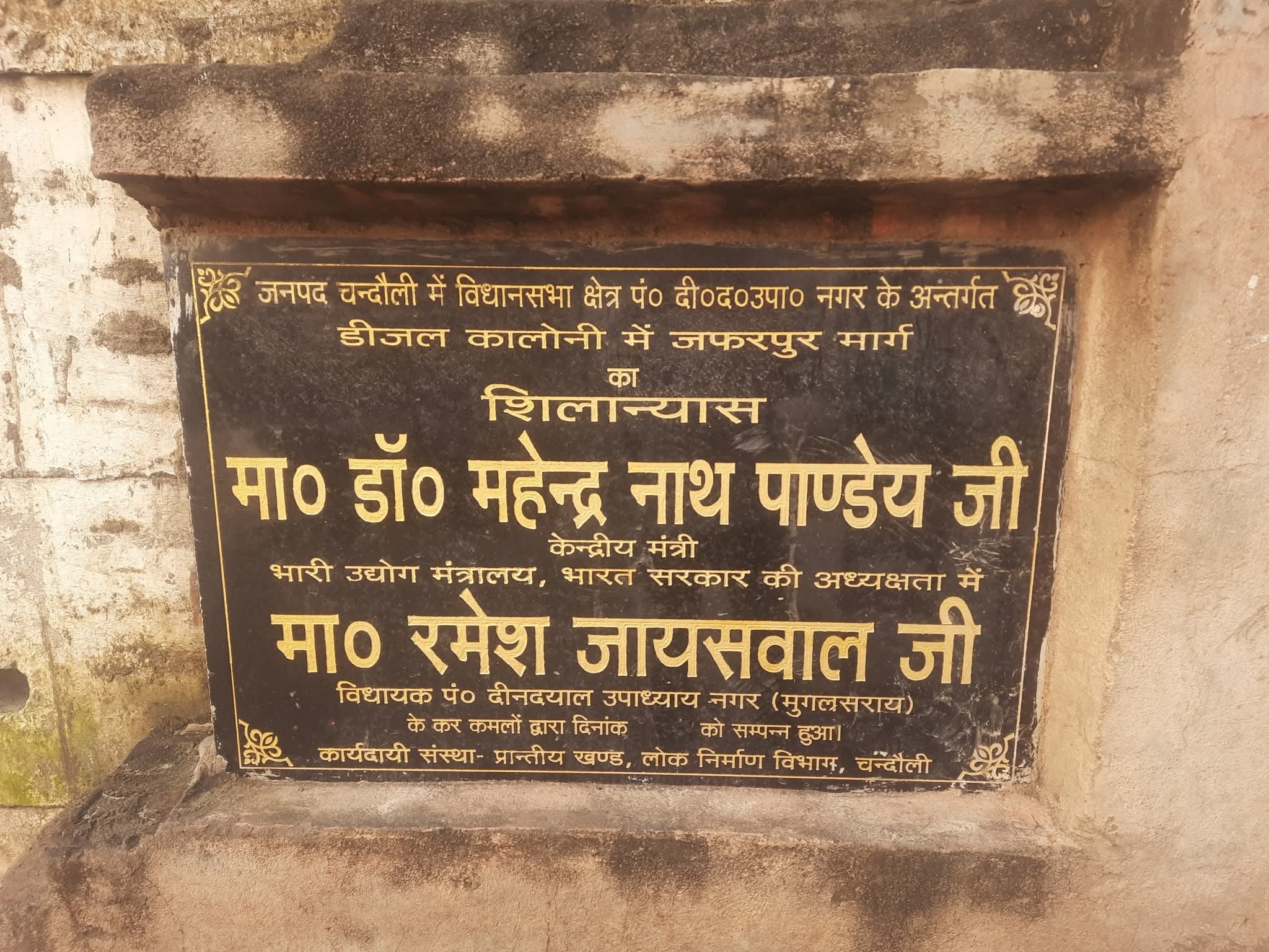 ● दरअसल ये डीजल कालोनी की रेल बाउंड्रीवाल है जहा से जफरपुर तक सड़क बनाने के लिए शिलान्यास का शिलापट्ट लगा दिया गया। यह सड़क कब्रिस्तान तक सीसी रोड और उसके आगे पिच रोड का टेंडर हुआ लेकिन यह कार्य शिलापट्ट से करीब 200 मीटर आगे से कार्य शुरू किया गया।सड़क बने एक अरसा बीत गया लेकिन यह सड़क कुछ दूर तक वैसे ही छोड़ दी गयी। बड़े बड़े गड्ढे में गिर कर वाहन सवार चोटिल हो रहे हैं वही इरिक्शा पलट जाने की घटना आम हो गयी है। इस संबंध ने समग्र विकास का दावा करने वाले विधायक प्रतिनिधि को कई बार अवगत कराया गया लेकिन कोरा आश्वासन के सिवाय कुछ हासिल नही हुआ।