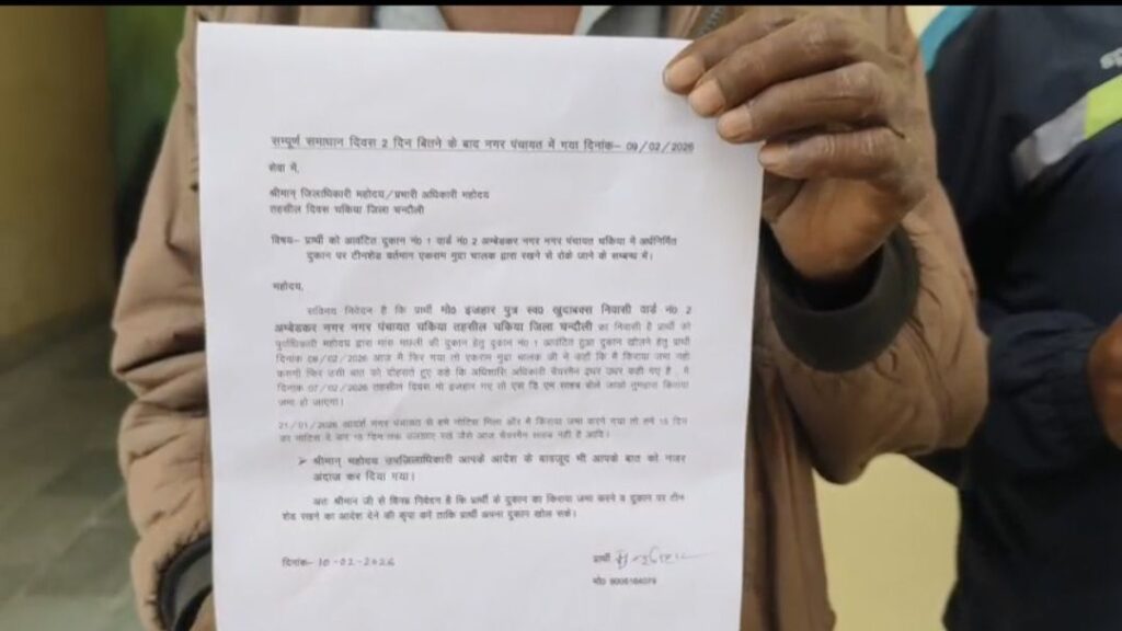 चंदौली ।चकिया नगर पंचायत चकिया में आवंटित मांस-मछली की दुकान के निर्माण को लेकर विवाद गहराता जा रहा है। अम्बेडकर नगर निवासी इमरान खान और उनके साथी इजहार ने आरोप लगाया है कि विधिवत आवंटन के बावजूद उन्हें निर्धारित स्थान पर दुकान का निर्माण नहीं करने दिया जा रहा है। परेशान होकर दोनों ने उपजिलाधिकारी (SDM) चकिया से मिलकर न्याय की गुहार लगाई है।