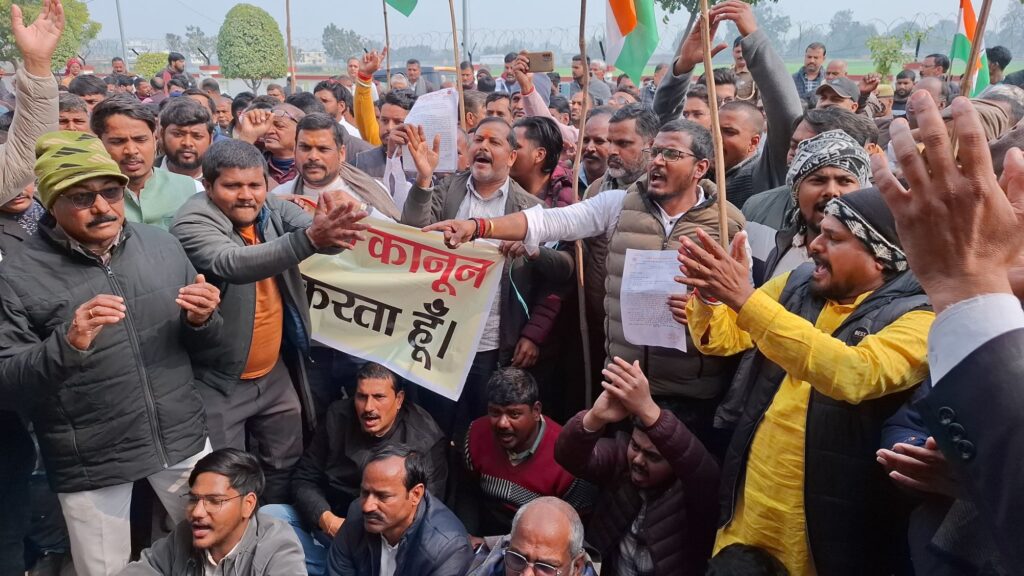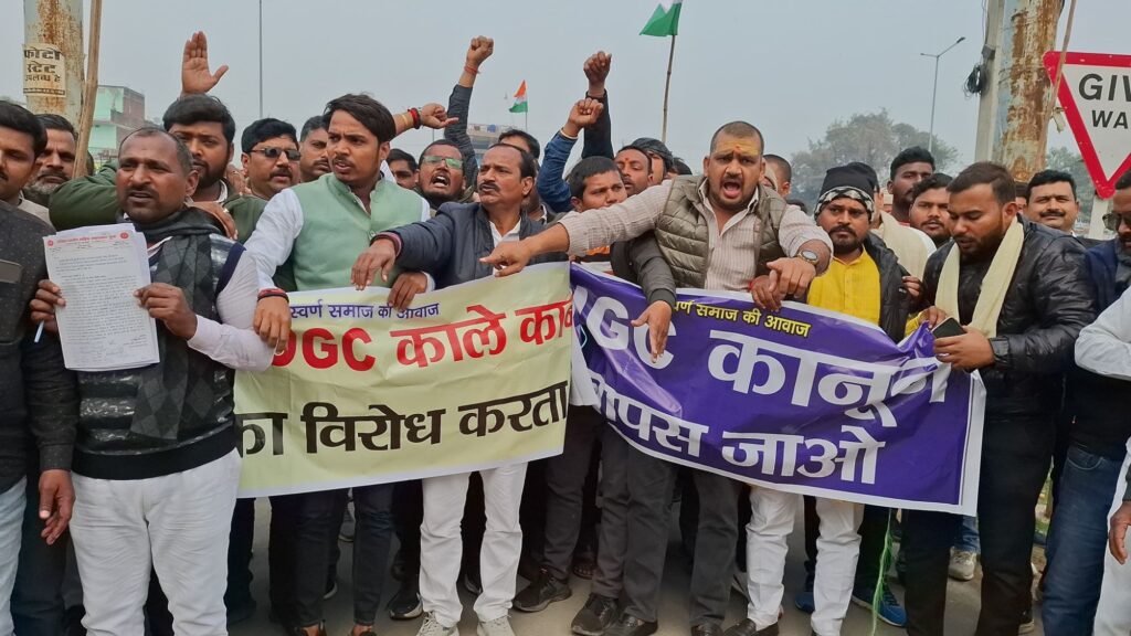 यूजीसी एक्ट/बिल के विरोध में चंदौली जनपद में अखिल भारतीय क्षत्रिय महासभा (युवा) के बैनर तले सवर्ण समाज के लोगों ने जोरदार प्रदर्शन किया। धरना स्थल पर बड़ी संख्या में समाज के लोग एकत्रित हुए और केंद्र सरकार के खिलाफ जमकर नारेबाजी की। प्रदर्शनकारियों ने यूजीसी बिल को “काला कानून” बताते हुए इसे तत्काल वापस लेने की मांग की।