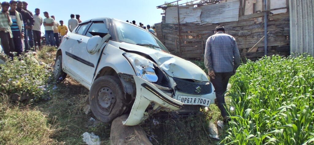 स्थानीय लोगों के अनुसार, यूपी 67 आर 7001 नंबर की डिजायर कार चंदौली की ओर से सैदपुर की तरफ तेज रफ्तार (करीब 100 किमी प्रति घंटा) से जा रही थी। मजीदहा पेट्रोल पंप के पास साइड से जा रहे बाइक सवारों को टक्कर मारते हुए चालक निकलने की कोशिश कर रहा था, तभी कार अनियंत्रित हो गई और सड़क किनारे खड़ी बाइकों व साइकिलों को टक्कर मारते हुए बिजली का खंभा तोड़कर खेत में जा गिरी।