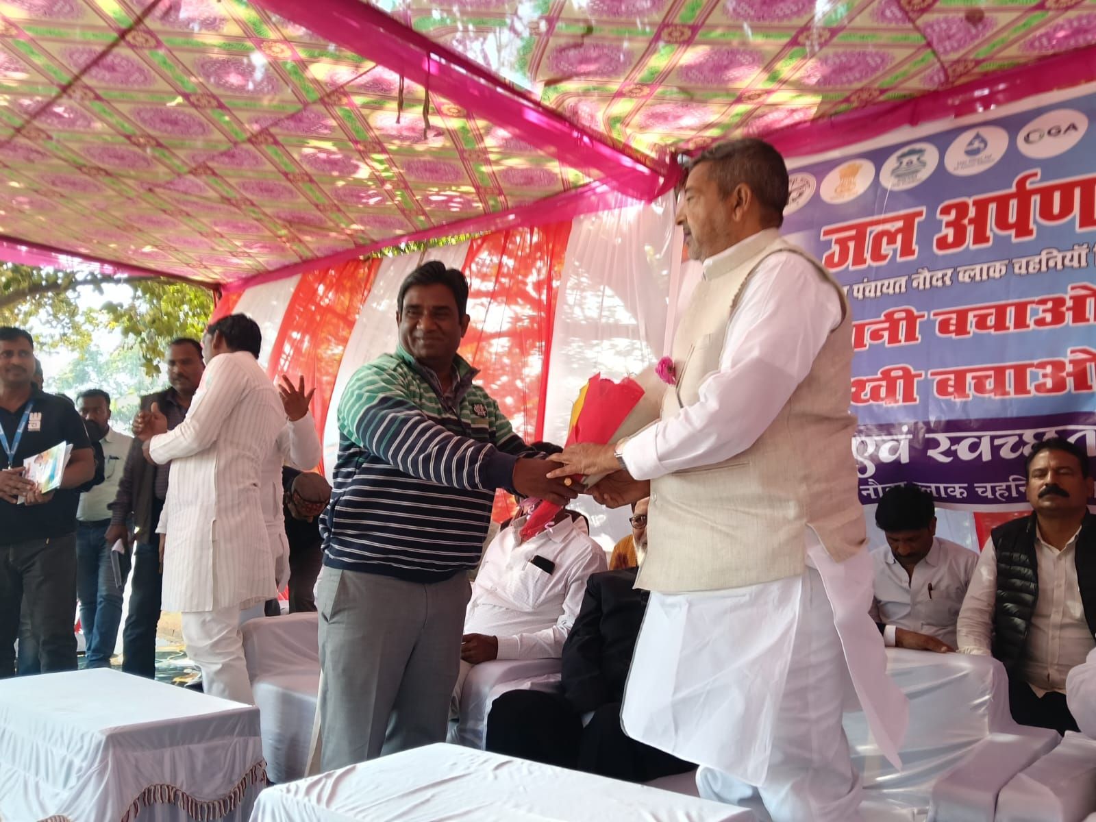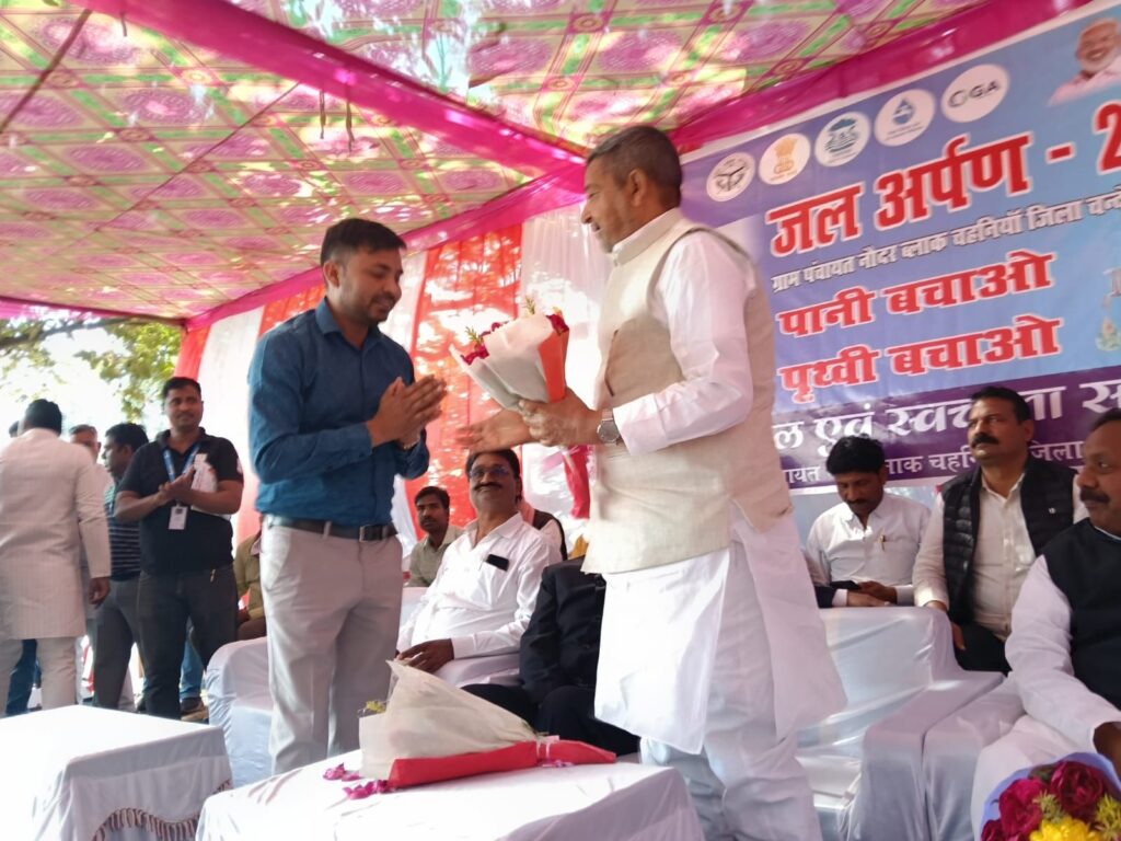 नौदर ग्राम सभा में तैयार जल निगम की पानी टंकी परिसर में मंगलवार को जल जीवन मिशन के तहत जिले का पहला ‘जल अर्पण दिवस’ कार्यक्रम आयोजित किया गया। कार्यक्रम में मुख्य अतिथि के रूप में चंदौली के सांसद वीरेन्द्र सिंह शामिल हुए। उन्होंने फीता काटकर कार्यक्रम का शुभारंभ किया