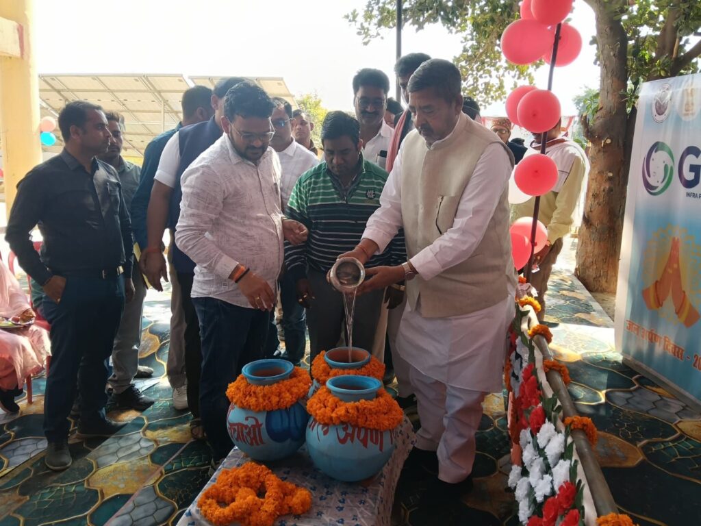 और पानी टंकी के पोल पर रक्षा सूत्र बांधकर तथा घड़े में जल भरकर ग्रामीणों को जल