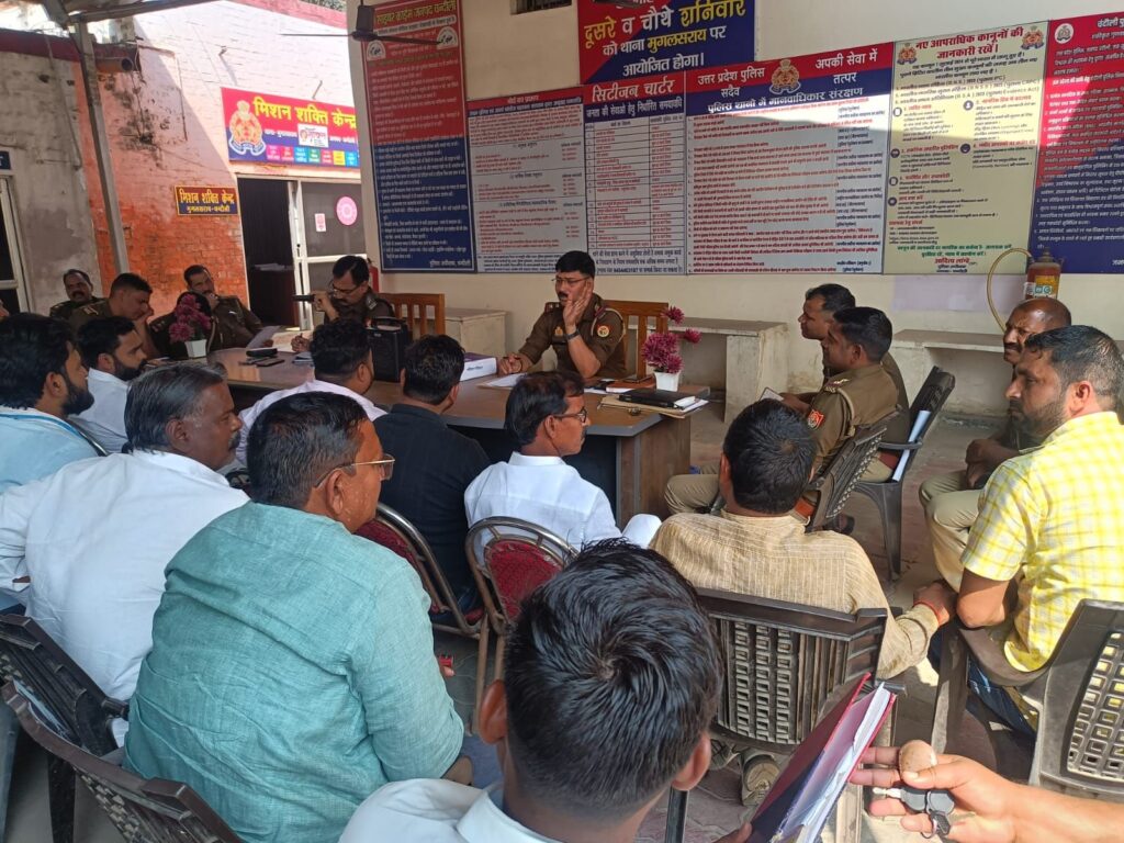 मुगलसराय। कोतवाली परिसर में क्षेत्र के लॉन संचालकों के साथ पीस कमेटी की महत्वपूर्ण बैठक आयोजित की गई। बैठक की अध्यक्षता इंस्पेक्टर संतोष कुमार सिंह ने की। बैठक में सुरक्षा, यातायात व्यवस्था और ध्वनि प्रदूषण को लेकर सख्त निर्देश दिए गए।