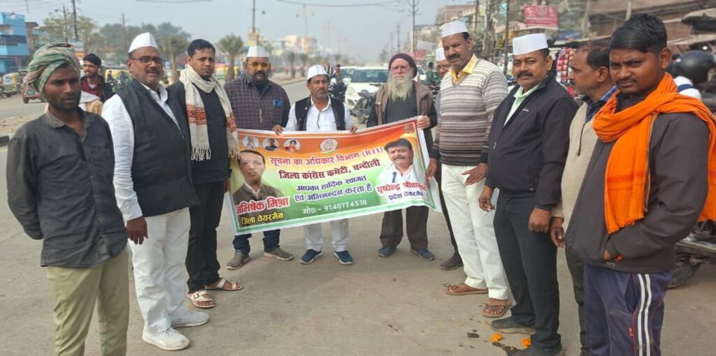पंडित दीनदयाल उपाध्याय नगर मुगलसराय स्थित जी.टी. रोड गुरुद्वारा के समीप जिला कांग्रेस कमेटी RTI विभाग चंदौली के तत्वावधान में गौ-रक्षा पूजन कार्यक्रम का आयोजन किया गया। कार्यक्रम की अध्यक्षता जिला चेयरमैन अभिषेक मिश्रा ने की। इस अवसर पर जिला चेयरमैन अभिषेक मिश्रा ने कहा कि सनातन धर्म एवं हिंदू संस्कृति में गौ माता का विशेष महत्व है। उन्होंने कहा कि गौ माता को ब्रह्मा जी द्वारा पृथ्वी पर दिया गया और पवित्र प्राणी माना गया है, जिसके मात्र स्पर्श से पापों का नाश हो जाता है। उन्होंने आरोप लगाया कि योगी एवं मोदी सरकार के कार्यकाल में गौकशी और गौमांस का निर्यात पांच गुना तक बढ़ गया है जो अत्यंत चिंताजनक है। उन्होंने मांग की कि गौकशी एवं गौमांस के निर्यात पर तत्काल रोक लगाई जाए तथा गौ माता को राष्ट्रीय पशु घोषित किया जाए।