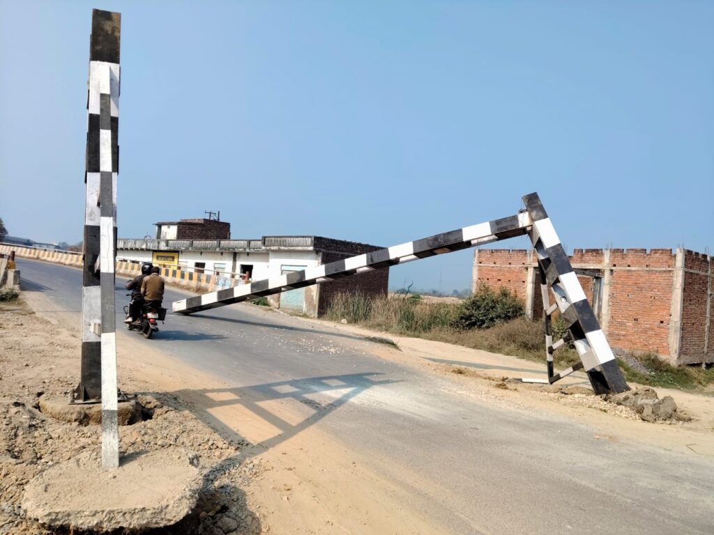 भारी वाहनों को रोकने वाला बैरियर रात में टूटा, आवागमन बाधित