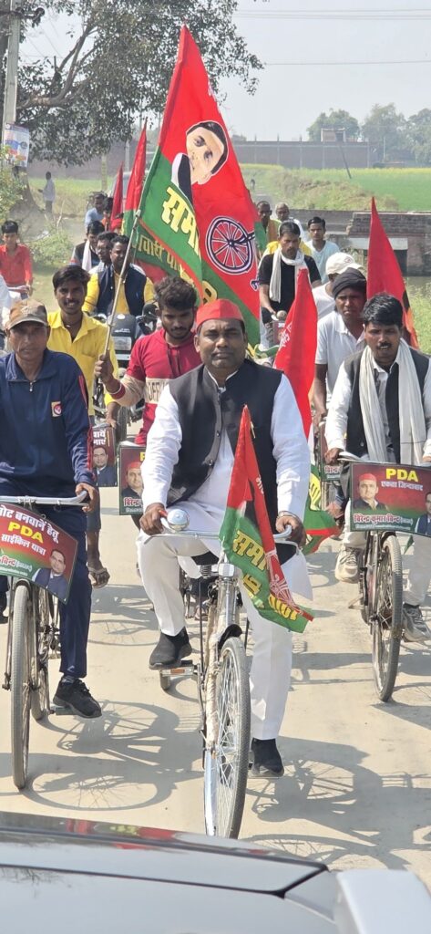 क्षेत्र में रविवार को पीडीए (पिछड़ा, दलित, आदिवासी, अल्पसंख्यक) साइकिल यात्रा का आयोजन किया गया। इस यात्रा का मुख्य उद्देश्य लोकतंत्र को मजबूत करना और ‘मिशन-2027’ के संकल्प को साकार करना था। इसमें बड़ी संख्या में कार्यकर्ता और स्थानीय ग्रामीण शामिल हुए।