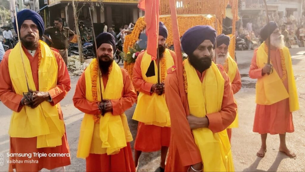 रविवार को तीसरे पहर गुरुद्वारे से भव्य शोभायात्रा निकाली गई, जिसमें बड़ी संख्या में श्रद्धालु शामिल हुए। शोभायात्रा के अग्रभाग में निहंग वेशधारी पंच प्यारे हाथों में तलवार लिए चल रहे थे। उनके पीछे सिख गुरुओं, गुरु नानक देव, गुरु अंगद देव, गुरु अर्जन देव और गुरु गोविंद सिंह के विशाल चित्रों की आकर्षक झांकियां सजाई गई थीं। सबसे पीछे सुसज्जित रथ पर पवित्र गुरु ग्रंथ साहिब की शोभा यात्रा निकाली गई, जहां श्रद्धालु पूरे मार्ग में शीश नवाते रहे।