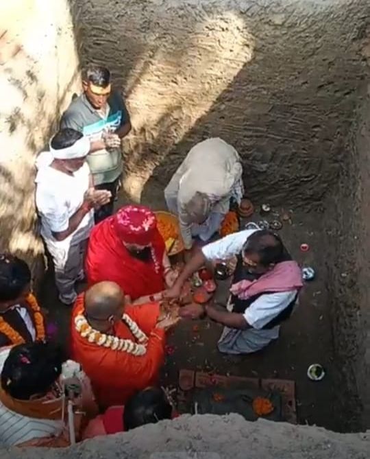 शिवलिंग मिलने पर बड़ी संख्या में ग्रामीण मौके पर जुट गए थे और विधि-विधान से पूजा-अर्चना प्रारंभ की गई थी। जिस भूमि पर शिवलिंग प्राप्त हुआ था, उसके स्वामी ने श्रद्धा भाव से मंदिर निर्माण के लिए एक बिस्सा जमीन दान कर दी थी और अब उसी पावन भूमि पर पूरे वैदिक मंत्रोच्चार और विधि-विधान के साथ मंदिर निर्माण कार्य का शुभारंभ किया गया है। यह कार्य माटी पूजन और चरण पूजन के साथ संपन्न हुआ। इस अवसर पर साधु-संतों ने वैदिक मंत्रों के बीच पूजा-अर्चना कर क्षेत्र की सुख-समृद्धि की कामना की।