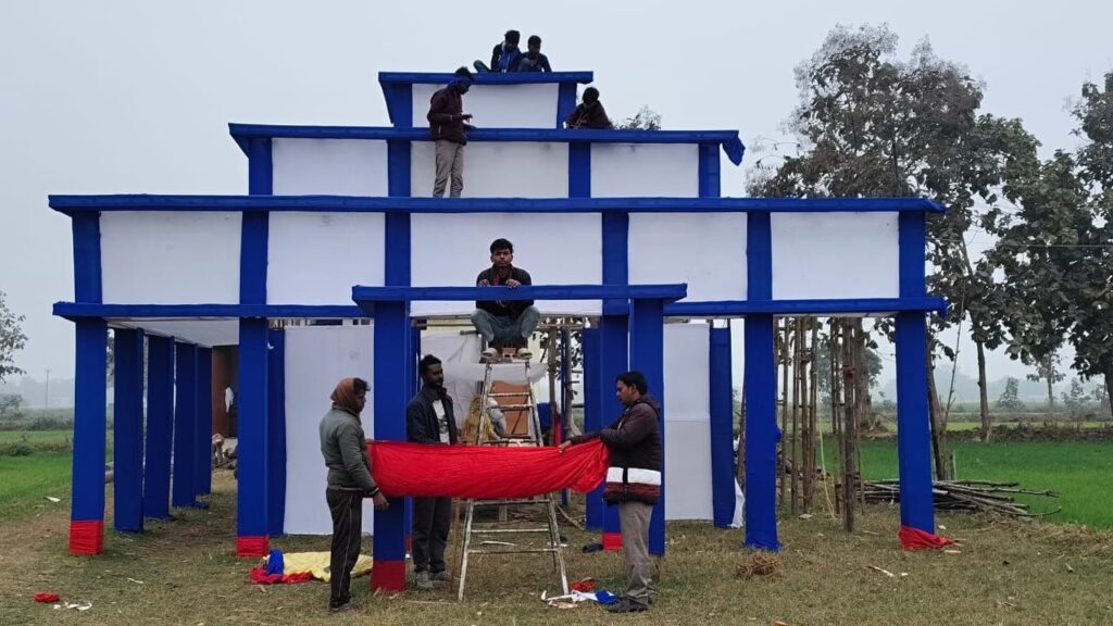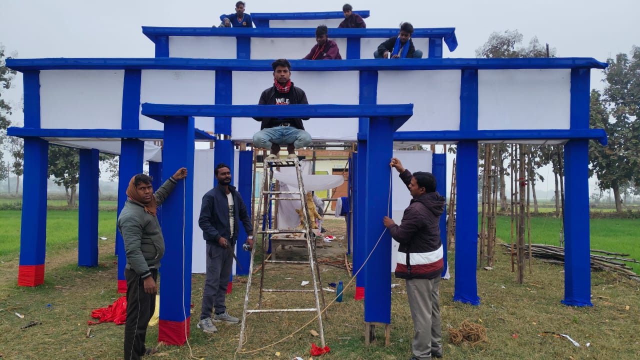 अलीनगर(धर्मेन्द्र प्रजापति)- थानाक्षेत्र के रामपुर बसनी गांव में विगत वर्षों की भांति इस वर्ष भी रविदास जयंती भव्य रूप से मानने को लेकर कलाकारों द्वारा आकर्षक पंडाल तैयार करने का कार्य जारी है। बताया जाता है कि क्षेत्र के निगमागम भीम बरखा बुलेटिन विचार सोसाइटी रामपुर द्वारा विगत 19 वर्षों से रविदास जयंती के उपलक्ष्य पर विशाल भंडारा और हवन पूजन का कार्यक्रम किया जाता है। इसकी तैयारी कमेटी के लोगों द्वारा एक महीने पहले से ही की जाती है। रविदास जयंती 1 फरवरी को भव्य रूप से मनाने को लेकर कमेटी के लोगों और कलाकारों द्वारा हजारों रुपए लागत से भव्य पंडाल तैयार किया जा रहा है। पंडाल तैयार करने में धर्मेंद्र भारती,रविचंद्र,चंद्र भास्कर,सुनील कुमार,अजय कुमार,दिलीप,शशि कुमार, आशीष,सुभाष,आकाश सहित कमेटी के तमाम लोग दिन रात इसको सफल बनाने के लिए जुटे हुए हैं।