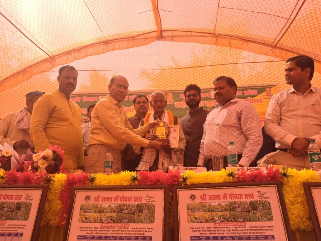 कृषि विज्ञान केन्द्र चंदौली के वैज्ञानिक डॉ. अभयदीप गौतम ने मिलेट्स अन्न की उत्पादन तकनीक और उनके लाभों पर विस्तार से प्रकाश डाला। उन्होंने कहा कि वर्तमान समय में खेती केवल जीविकोपार्जन का साधन नहीं, बल्कि आय बढ़ाने का सशक्त माध्यम बन चुकी है।