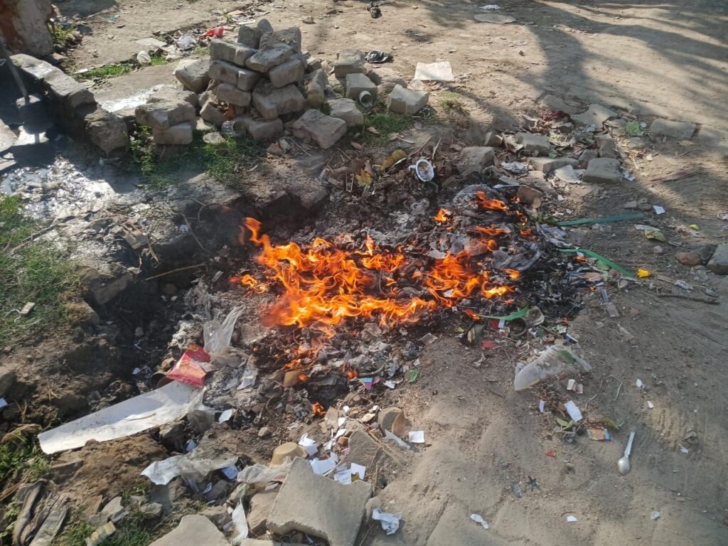 तस्वीरों में देखा जा सकता है कि कूड़े का समुचित निस्तारण करने के बजाय उसे जलाया जा रहा है। जिससे न केवल प्रदूषण फैल रहा है बल्कि आसपास के लोगों के स्वास्थ्य पर भी प्रतिकूल प्रभाव पड़ रहा है। धुएं और दुर्गंध से क्षेत्रवासियों को भारी परेशानी का सामना करना पड़ रहा है।