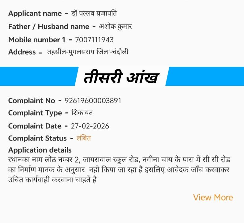 इस संबंध में सीएम हेल्पलाइन नंबर पर भी शिकायत दर्ज कराई गई थी, जहां से सहयोग का आश्वासन मिला था। अन्य संबंधित अधिकारियों को भी इस स्थिति से अवगत कराया गया था। स्थानीय निवासियों ने प्रशासन से तुरंत मौके पर निरीक्षण करने, जिम्मेदार कर्मचारियों या ठेकेदार के खिलाफ कार्रवाई करने और सड़क तथा नाली व्यवस्था को सही तरीके से सुधारने की अपील की है।