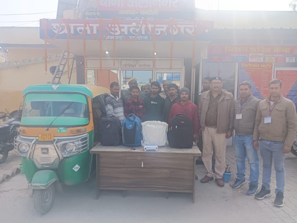 चन्दौली(अलीनगर) – जनपद में अवैध शराब तस्करी के खिलाफ चलाए जा रहे अभियान के तहत अलीनगर पुलिस व रेलवे सुरक्षा बल की संयुक्त टीम को बड़ी सफलता उस वक्त मिली जब पुलिस ने एक ऑटो से 51.20 लीटर अवैध अंग्रेजी शराब बरामद करते हुए पांच अभियुक्तों को गिरफ्तार कर लिया।बरामद शराब की कीमत 1 लाख 20 हजार रुपये आंकी गयी है।