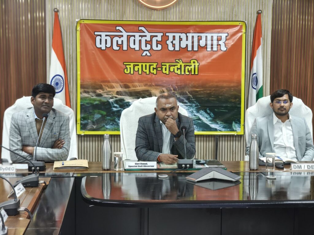 चंदौली-संयुक्त सचिव, युवा कार्य एवं खेल मंत्रालय भारत सरकार तथा वाराणसी मण्डल के लिए नामित विशेष रोल प्रेक्षक श्री कुणाल IAS की अध्यक्षता में विधानसभा निर्वाचन क्षेत्रों की निर्वाचक नामावलियों के विशेष संक्षिप्त पुनरीक्षण SIR कार्यक्रम के अंतर्गत मान्यता प्राप्त राष्ट्रीय एवं राज्य स्तरीय राजनीतिक दलों के पदाधिकारियों के साथ कलेक्ट्रेट सभागार में समीक्षा बैठक संपन्न हुई।