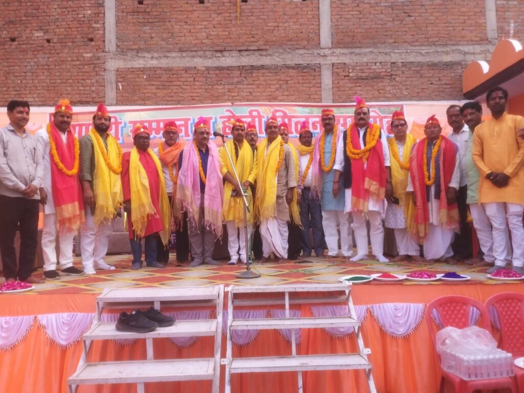 चहनियां(चन्दौली) शिव मंदिर पर होली मिलन कार्यक्रम करते व्यापारी गण