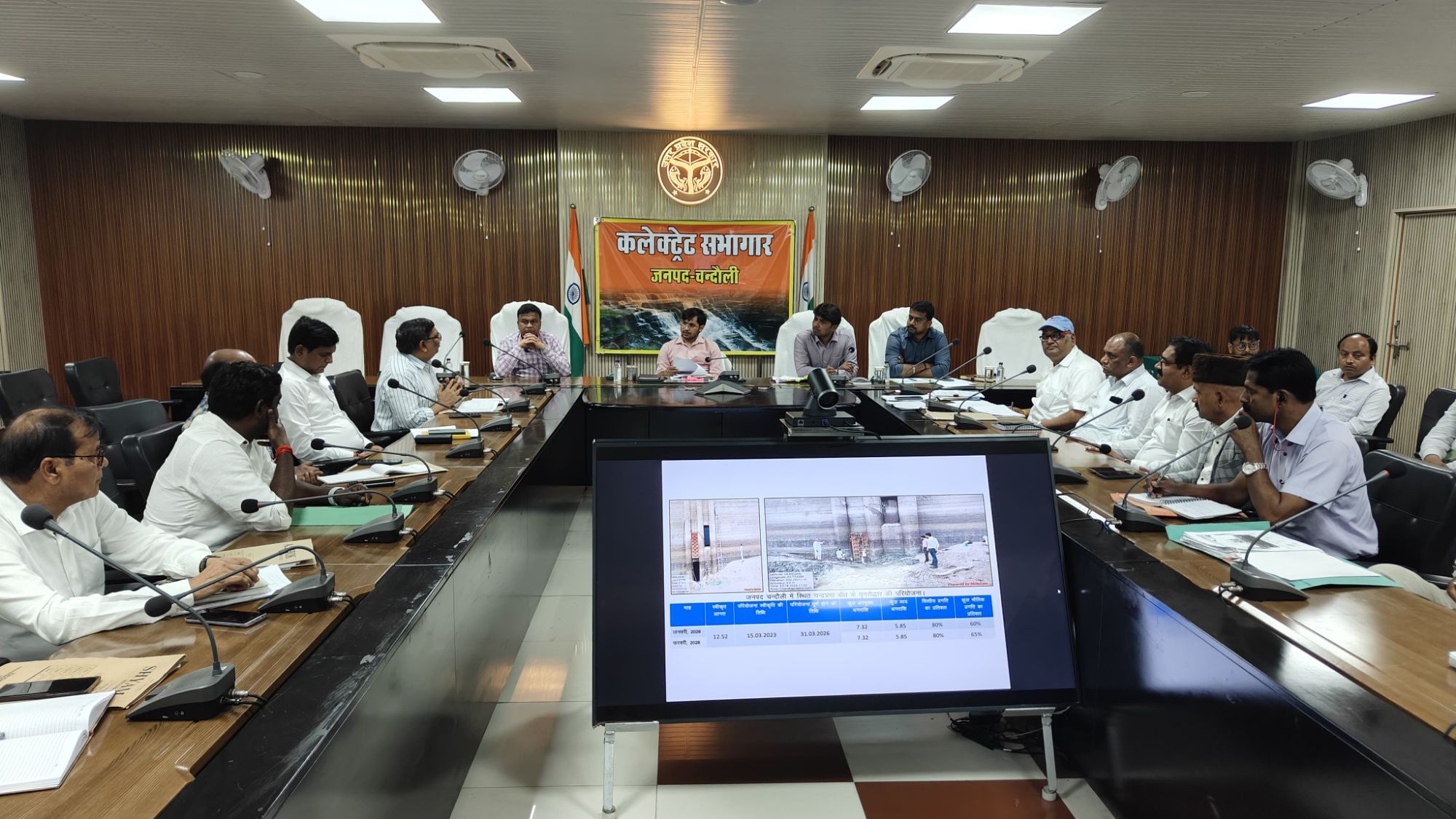 जिलाधिकारी चंद्र मोहन गर्ग की अध्यक्षता में कलेक्ट्रेट सभागार में 50 लाख रुपये से अधिक लागत वाली निर्माण परियोजनाओं, पूर्वांचल विकास निधि, क्रिटिकल गैप्स और त्वरित आर्थिक विकास कार्यक्रम की समीक्षा बैठक आयोजित की गई। बैठक में जिले में चल रहे विभिन्न विकास कार्यों की प्रगति पर विस्तार से चर्चा की गई और उन्हें निर्धारित समयसीमा के भीतर गुणवत्तापूर्ण ढंग से पूरा करने के निर्देश दिए गए।