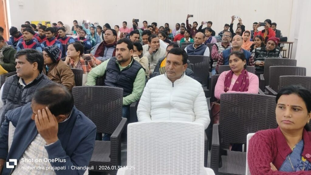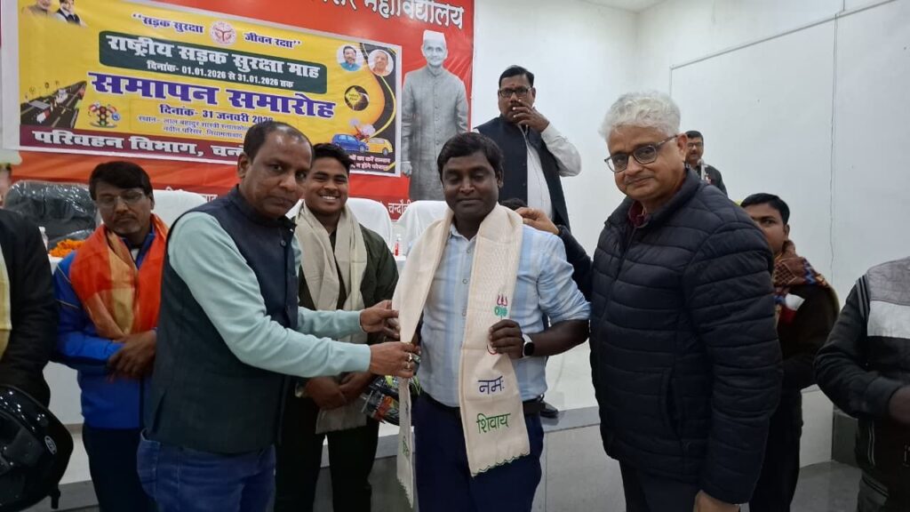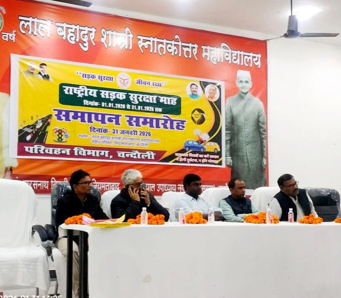 चंदौली- नियामताबाद स्थित लाल बहादुर शास्त्री पीजी कालेज के सभागार में परिवहन विभाग द्वारा राष्ट्रीय सडक सुरक्षा माह के समापन समारोह का आयोजन किया गया। इस दौरान स्काउट गाइड व छात्र छात्राओं के बीच वाराणसी से आये मंच दूतम के कलाकारों को नुक्कड़ नाटक व संगीत के जरिये यातायात नियमो की जानकारी व उलंघन से होने वाले दुष्परिणामों पर प्रस्तुति दी।