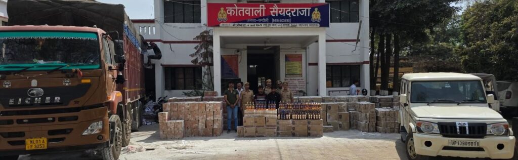 चंदौली के सैयदराजा में पुलिस और स्वाट टीम ने बड़ी कार्रवाई की है। नेशनल हाईवे पर एक ट्रक से करीब 1.20 करोड़ रुपये मूल्य की अवैध अंग्रेजी शराब बरामद की गई है। पुट्टी की बोरियों में छिपाकर ले जाई जा रही 710 पेटी शराब जब्त की गई, और इस मामले में दो शराब तस्करों को गिरफ्तार किया गया है।