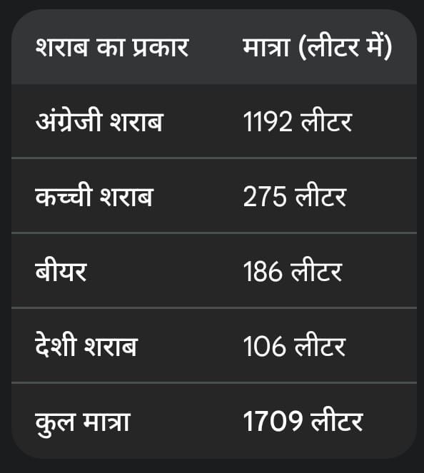 नष्ट की गई शराब का विस्तृत विवरण