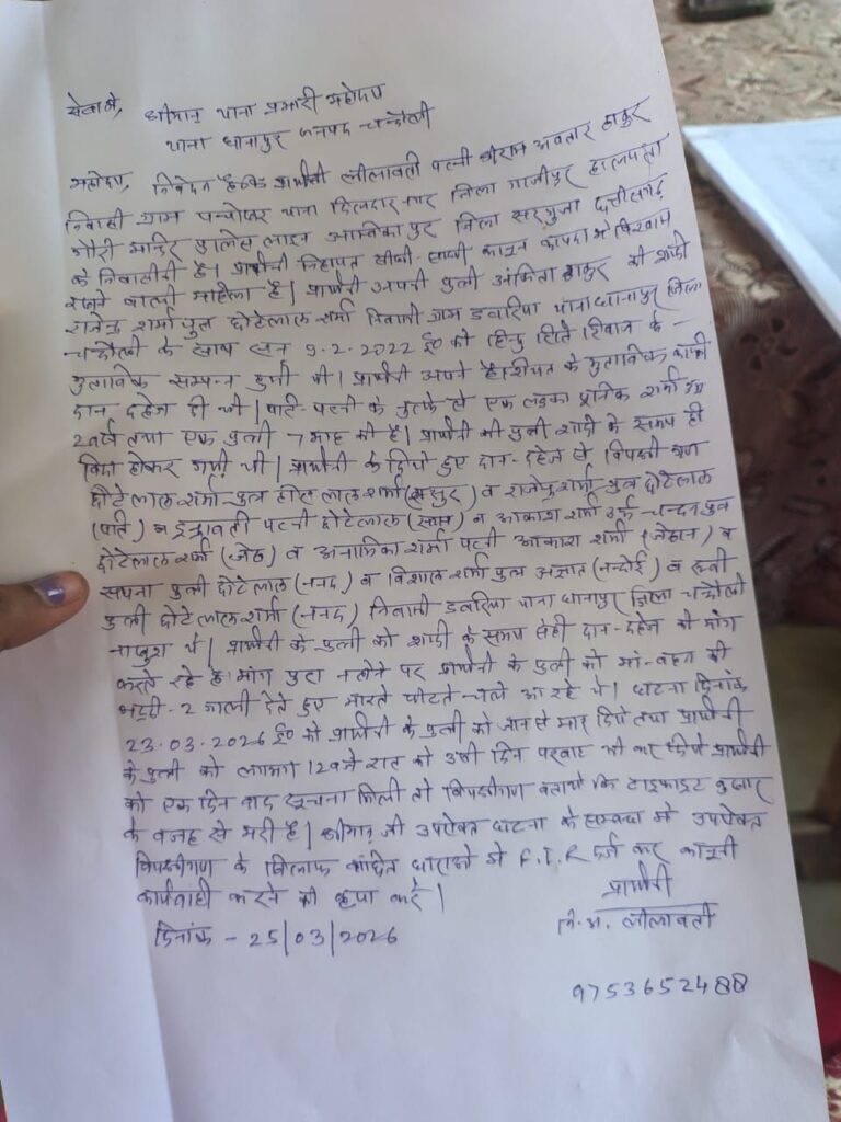 परिजनों के अनुसार, अंकिता की शादी वर्ष 2022 में चंदौली जिले के धानापुर थाना क्षेत्र के डवरिया गांव निवासी राजेंद्र शर्मा के साथ हुई थी। शादी के बाद से ही अंकिता को दहेज की मांग को लेकर लगातार प्रताड़ित किया जा रहा था।