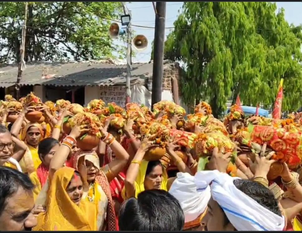 कलश यात्रा का नेतृत्व अजय जायसवाल ने किया। यात्रा में 108 महिलाओं ने सिर पर कलश रखकर श्रद्धा और आस्था के साथ पैदल यात्रा की। पूरे मार्ग में “जय माता दी” के जयकारों से वातावरण भक्तिमय बना रहा और जगह-जगह श्रद्धालुओं ने पुष्प वर्षा कर यात्रा का स्वागत किया।