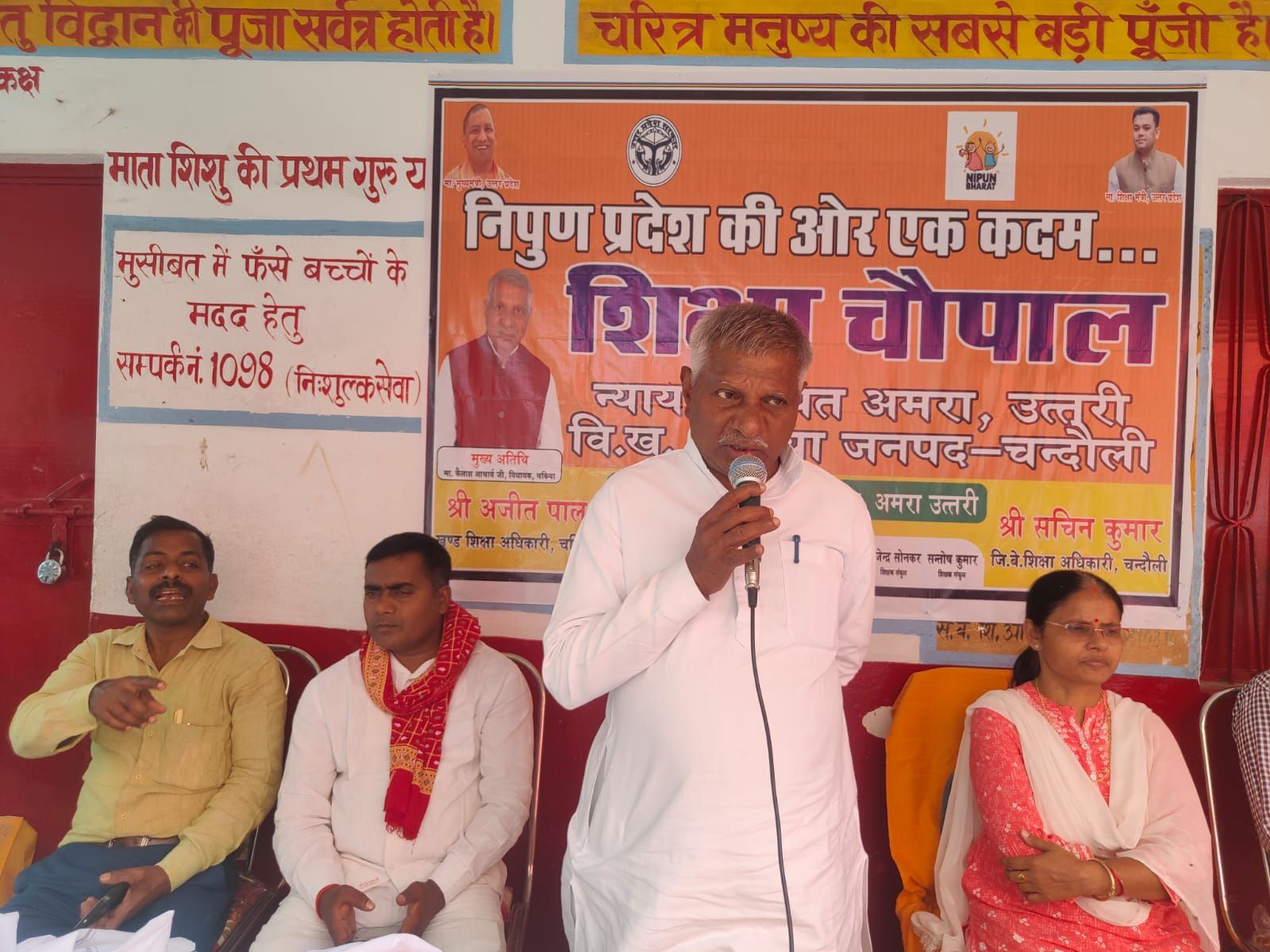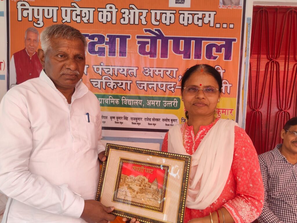 चकिया । चकिया विकासखंड के पूर्व माध्यमिक विद्यालय अमरा उत्तरी में शनिवार को निपुण भारत मिशन के अंतर्गत शिक्षा चौपाल का आयोजन किया गया। इस दौरान जनभागीदारी सुनिश्चित करने, नामांकन बढ़ाने, डिजिटल शिक्षण को प्रोत्साहन देने तथा बच्चों के नामांकन व ठहराव पर विशेष जोर दिया गया।