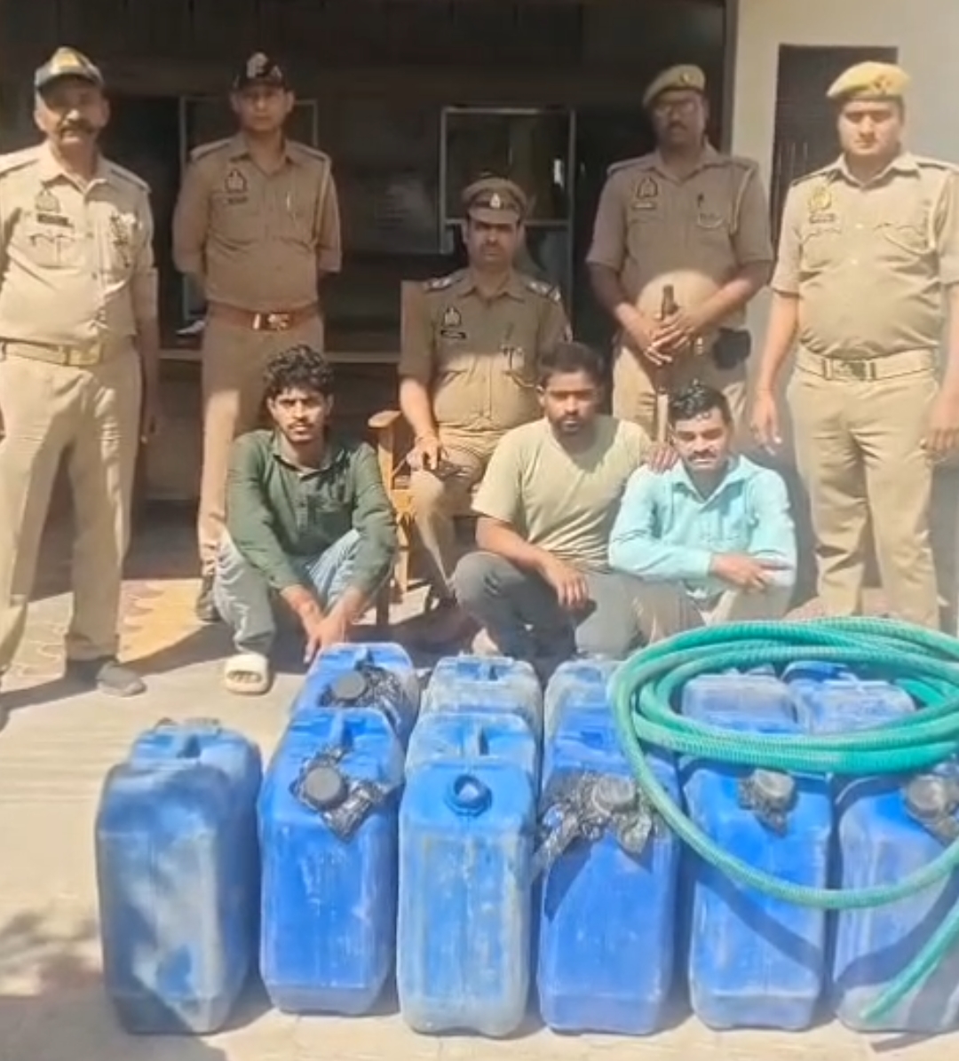 पुलिस के अनुसार मुखबिर की सटीक सूचना पर सहजौर रिंग रोड के अंडर पास के उपर के पास तेल चोरी की घटना को अंजाम देते हुए 3 चोरो को पुलिस ने धर दबोचा। कारित करने वाले 03 अभियुक्तों को गिरफ्तार किया गया। गिरफ्तार चोरो के कब्जे से पुलिस ने चोरी की घटना में प्रयुक्त वाहन स्विफ्ट डिजायर UP61 AJ 8990, चोरी के 13 गैलन, दो प्लास्टिक की पाईप, एक पेचकस , दो मोबाइल फोन व नगद 10 हजार रुपये बरामद किया गया।