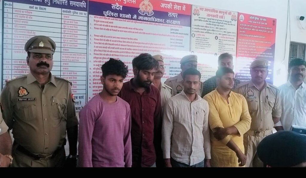मुगलसराय(चन्दौली) विगत 2 दिन पूर्व मुग़लसराय कोतवाली क्षेत्र के रिंग रोड पर कुरहना के समीप पिकअप सवार व्यापारी व ड्राइवर को आतंकित कर 45 हजार की लूट की घटना का पर्दाफाश करते हुए पुलिस ने घटना में शामिल चालक रोहित पटेल समेत चार लोग विपिन सिंह,आकाश सिंह,विशाल पटेल को गिरफ्तार किया है। जिनके पास से 23 हजार रुपए नकदी,एक सोने का लॉकेट, दो मोबाइल फोन व घटना में प्रयुक्त म्यान के साथ तलवार बरामद किया है।
