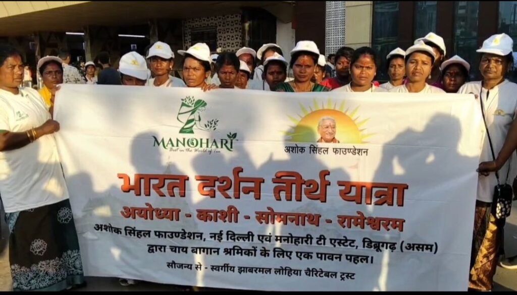 चंदौली- भारत के प्रधानमंत्री नरेंद्र मोदी की पहल पर असम के चाय बागानों में काम करने वाले मजदूरों को काशी और अयोध्या भ्रमण समेत चार धाम यात्रा पर निकले हैं। इस दौरान असम के डिब्रूगढ़ स्थित चाय बागान के 25 महिला कर्मियों और 5 पुरुष सदस्यों ने अयोध्या में प्रभु श्रीराम मंदिर और वाराणसी में काशी विश्वनाथ धाम का दर्शन-पूजन किया।