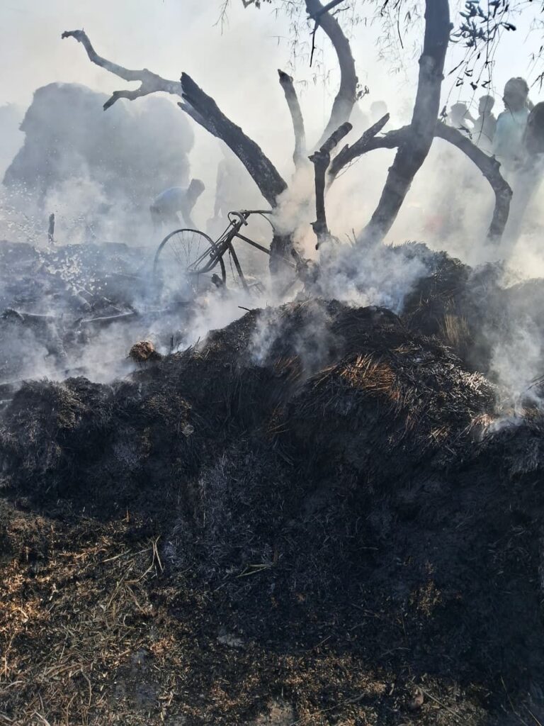 आग की चपेट में आकर घर में रखा अनाज, साइकिल, चौकी, बिस्तर समेत दैनिक उपयोग का सारा सामान जलकर खाक हो गया। घटना के बाद परिवार के सामने रहने तक का संकट खड़ा हो गया है और वे खुले आसमान के नीचे रहने को मजबूर हैं।