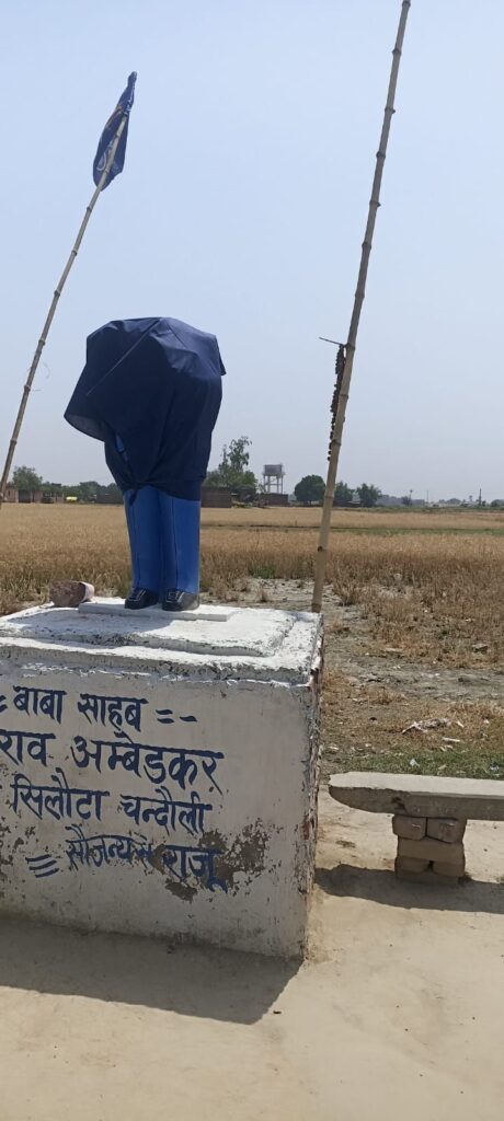 चंदौली जिले के धीना थाना क्षेत्र के सिलौटा गांव में संविधान निर्माता भीमराव अंबेडकर की प्रतिमा तोड़े जाने की घटना से क्षेत्र में तनाव और आक्रोश का माहौल है। खास बात यह है कि यह घटना दूसरी बार हुई है, जिससे स्थानीय लोगों में गुस्सा और बढ़ गया है।