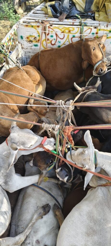 पुलिस के हत्थे चढ गए।पिकअप मे 11 राशि गाय व एक बछडा लादे गए थे। तस्कर शैलेन्द्र यादव पुत्र बेचन यादव महदेवा अमिलाई को हिरासत मे लेकर आवश्यक कार्यवाही मे जुट गयी।कार्यवाही मे थाना प्रभारी राजीव मल्ल चौकी इंचार्ज विजय राय सहित अन्य पुलिस कर्मी सम्मिलित रहे।