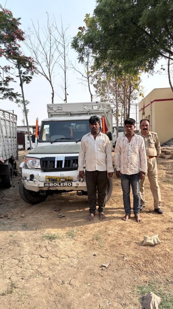 कंन्दवा कंदवा पुलिस ने शुक्रवार के सुबह। दो महेन्द्रा पिकअप वाहन से पशु तस्करी को ले जाए जा रहे 10 पशुओं के साथ 4 पशु तस्करों को किया गिरफ्तार।कंदवा थाना प्रभारी राजीव मल्ल ने बताया की सैयदराजा जमानिया मार्ग से पशुओं को आने की सूचना मुखबिर से मिली जिसके आधार पर पुलिस वाहनों की जांच शुरू कर दी ।पुलिस जांच से कुछ दूरी से ही दोनों वाहन अपने वाहन मुड़कर आने वाली दिशा को जाने लगे तेज गति होने के कारण एक वाहन बहेरा गांव से 500मी दुर नहर में पशुओं के साथ पलटगई वही दूसरे वाहन को पुलिस नेधीना मार्ग से गिरफ्तार किया।गिरफ्तार वाहन के पीछे पानी की बोतल भरकर रखा गया है जिससे पुलिस को पता नहीं चल पाए।कंदवा पुलिस ने दोनों वाहन को थाने लेकर आई आवश्यक कार्यवाही शुरू कर दी है।