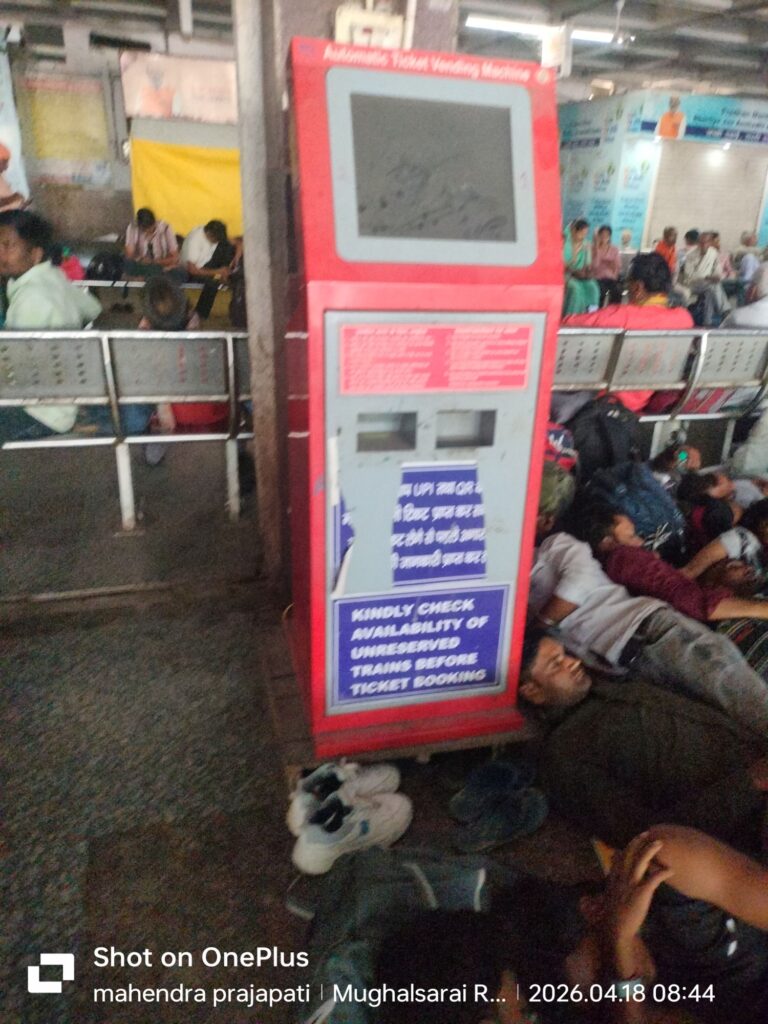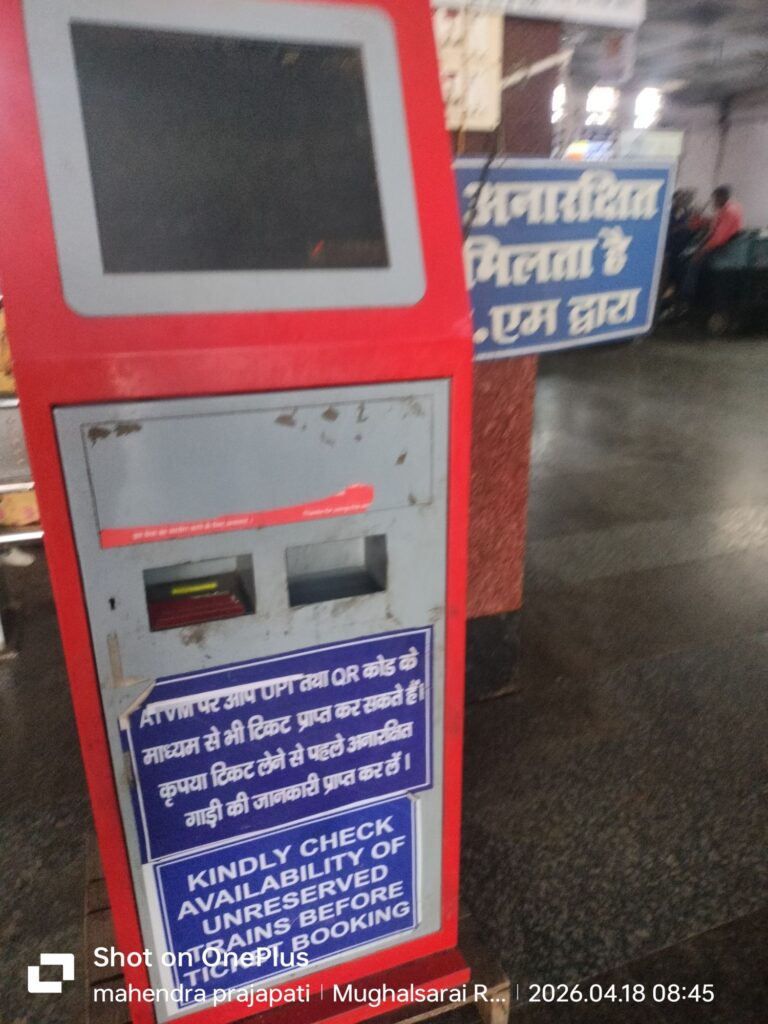 दूसरी तस्वीर डीडीयू जंक्शन के ऑटोमेटिक टिकट वेंडिंग मशीन की है। जहां यह मशीन कई दिनों से धूल फांक रही है और यात्री लंबी कतार लगाकर टिकट खरीद रहे हैं। यात्री सुविधा के इस दावे की भी यही हवा निकल जाती है।