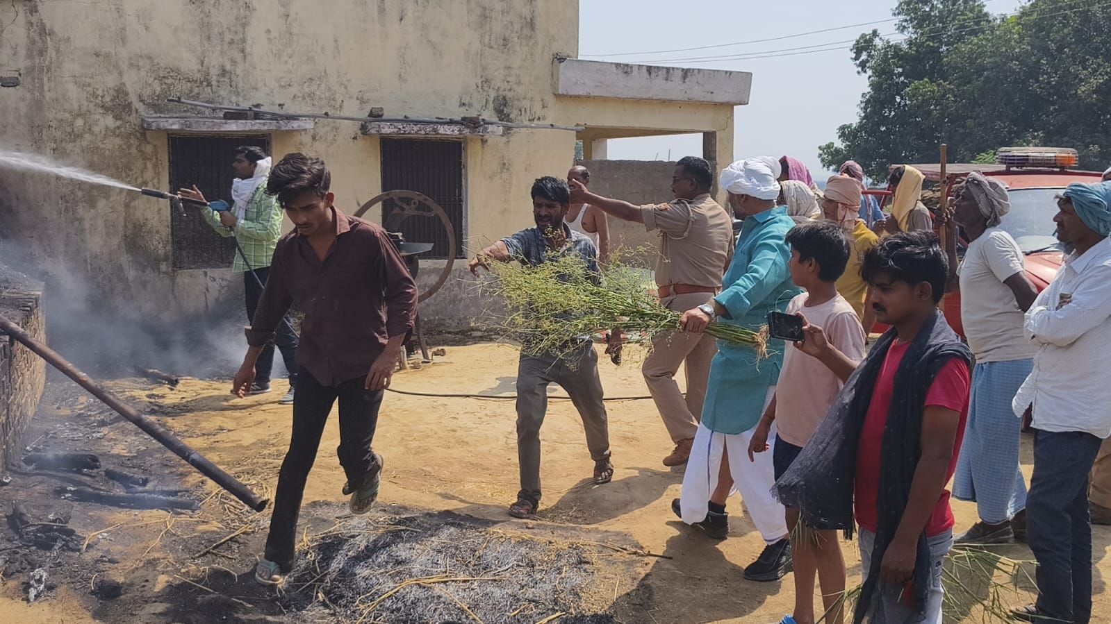 प्रत्यक्षदर्शियों के अनुसार आग इतनी भयंकर थी कि घरों में रखे गैस सिलेंडर एक-एक कर फटने लगे, जिससे पूरे इलाके में अफरा-तफरी मच गई। ग्रामीणों ने किसी तरह आग बुझाने की कोशिश की, लेकिन लपटों के आगे उनकी एक न चली।